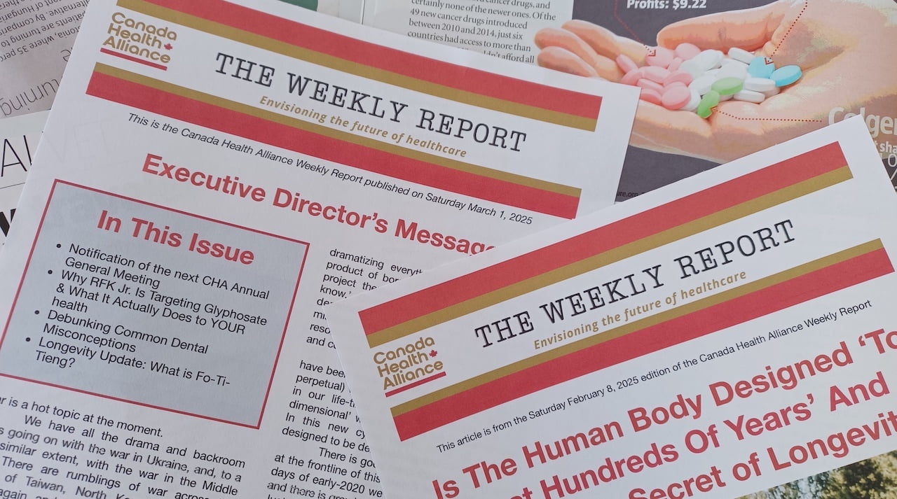 DISCLAIMER: Canada Health Alliance is not responsible for the content of this newsletter and makes no medical claims, statements or assertions based any of the content which is often provided by third-party contributors. It is presented purely for information purposes and should not be taken as medical, nutritional or legal advice. Canada Health Alliance nor any of its representatives have any responsibility or liability for any content, statements, implications, actions or consequences that may arise as a result of this publication. We encourage everyone to do their own research and make their own conclusions and decisions about what is right for them and their personal circumstances.